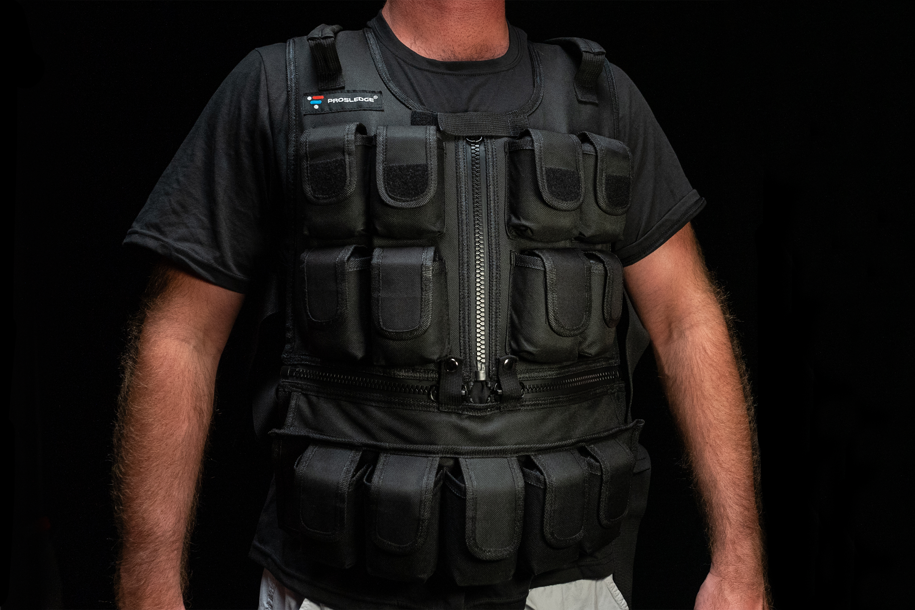 The ProSledge Weighted Vest is made with 600D polyester a highly breathable and comfortable fabric with long lasting durability and resistance to tears and scuffs. Features also include extra shoulder and back padding, reinforced stitching and heavy duty zippers.